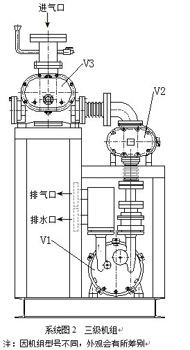 載荷試車:手動啟動V1,預抽系統至-0.092MPa,啟動V2抽至-0.096MPa,啟動V3,系統正常工作約0.5小時后,停車順序同空載試車操作。